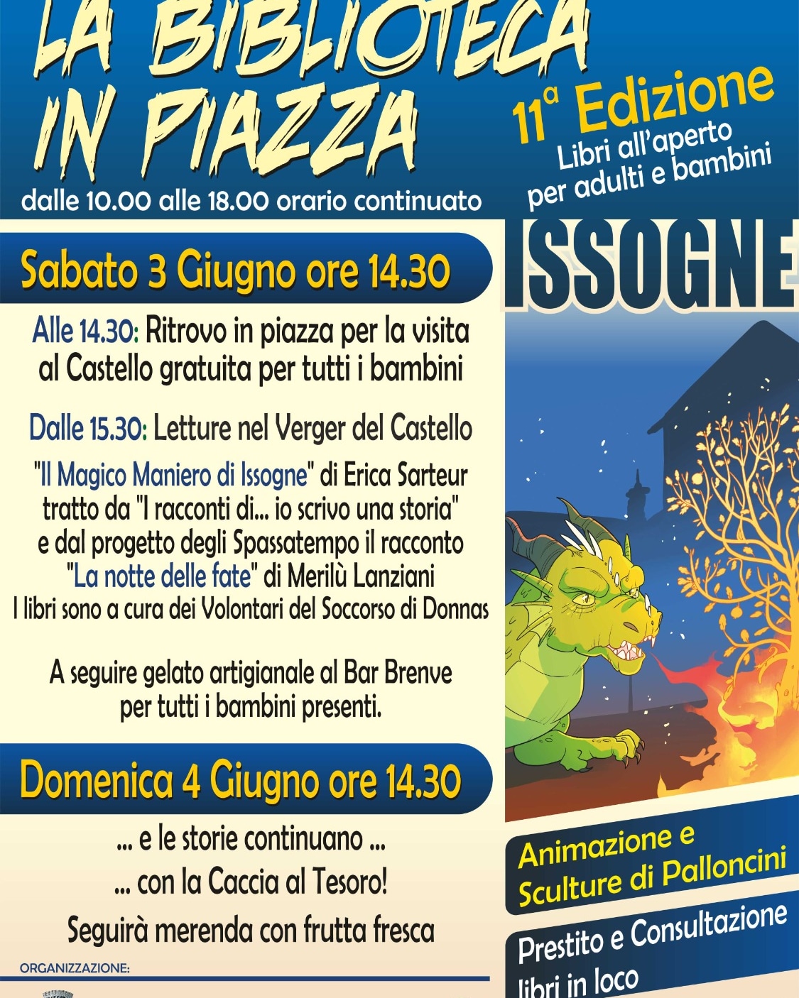 Un evento che comprende cultura, libri, giochi, visita al Castello, lettura nel verger del Castello, gelato artigianale e una divertente caccia al tesoro!