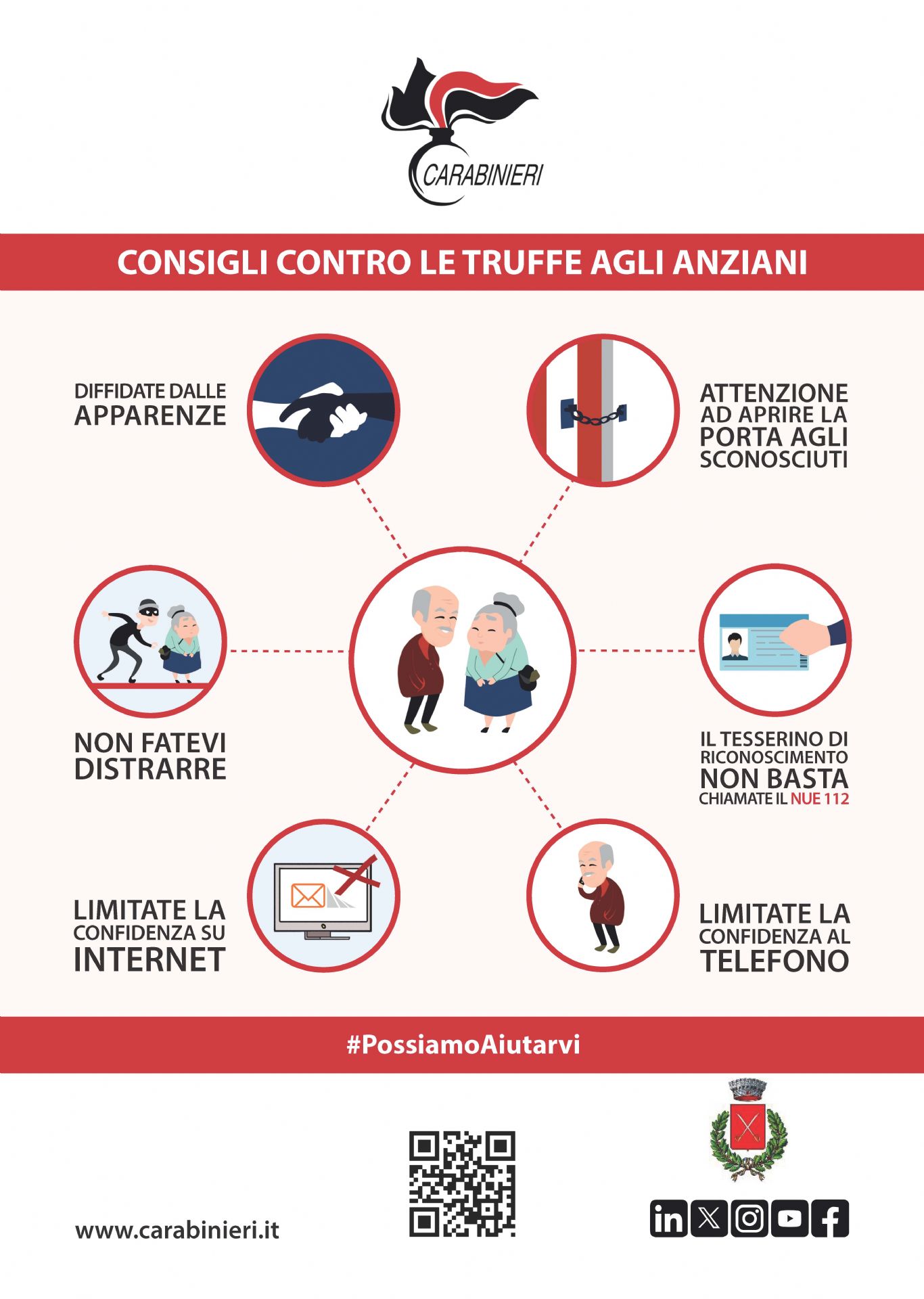 Pubblichiamo di seguito una locandina e una brochure ideate dall'Arma dei Carabinieri nell'ambito della campagna di prevenzione e sensibilizzazione sulle truffe agli anziani.