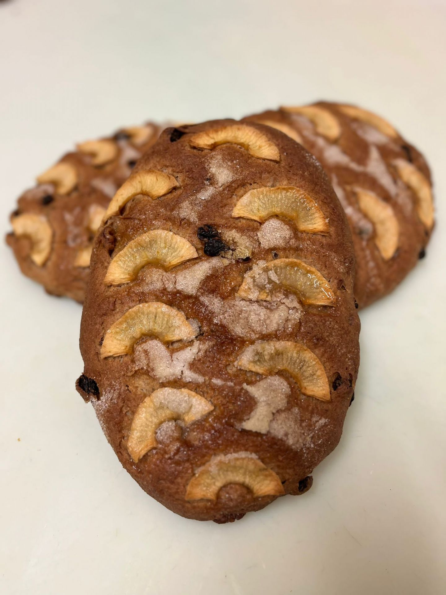 L’impasto di acqua, farina, lievito e sale deve lievitare per circa 2 ore. In seguito vengono aggiunti burro, noci, uvetta. L’impasto viene suddiviso in forme ovali o all’interno di teglie fino a raggiungere uno spessore di circa 3 cm. Poi vengono posizionate sulla superficie le mele, tagliate a fette sottili e il tutto è cosparso di abbondante zucchero. Le piate sono cotte in forno per circa un’ora a una temperatura moderata e si conservano per circa un mese in luogo fresco e asciutto.