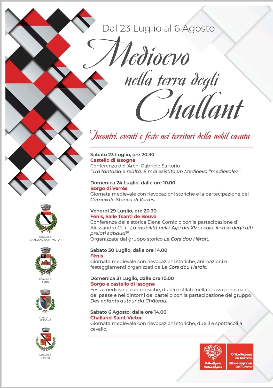 Dal 23 luglio 2022 al 06 agosto 2022 i comuni di Verrès, Issogne e Challand-Saint-Victor ospiteranno l’evento Medioevo nella terra degli Challant.
