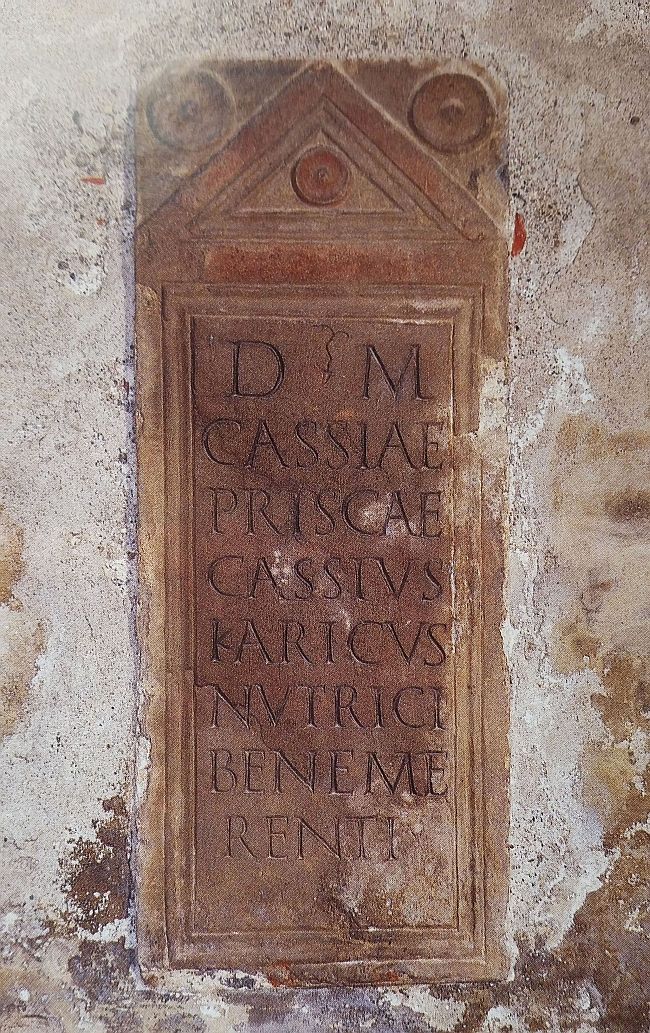 I primi ritrovamenti databili, riferiti alla presenza umana, sono di età romana. Indagini archeologiche condotte nei sotterranei del castello nel 1972 hanno portato alla luce resti murari delimitanti una serie di vani contigui. Le strutture si impostano su un orizzonte di età tardo repubblicana, ma rimane il problema della datazione complessiva della costruzione, i cui scavi hanno fornito scarsi materiali di studio. Il pezzo più importante tra questi è una stele funeraria in marmo grigio, risalente al I o al II secolo d. C., murata sin dalla fine del XV secolo in una edicola del giardino interno del maniero. Si tratta dell’attestato di riconoscenza di tale Cassio Karico alla sua nutrice Cassia Prisca: D(iis) M(anibus) / Cassiae / Priscae / Cassius / Karicus / nutrici / beneme/renti. Indice di una provenienza “straniera” del donatore rispetto alla popolazione romana, sembra essere l’iniziale “K” del suo nome, inconsueta nell’alfabeto latino e possibile indizio di elemento autoctono.