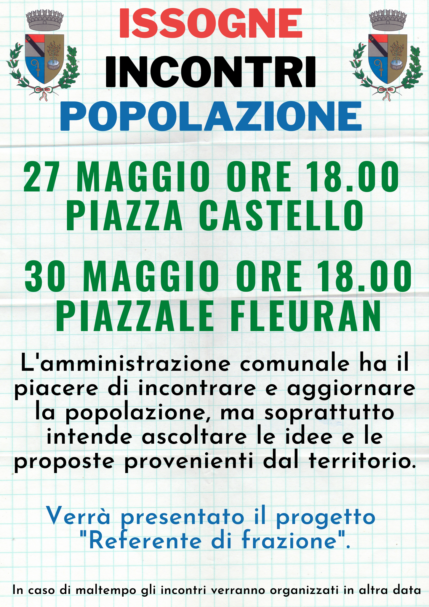 L'Amministrazione Comunale organizza alcuni incontri con la popolazione nei seguenti giorni: