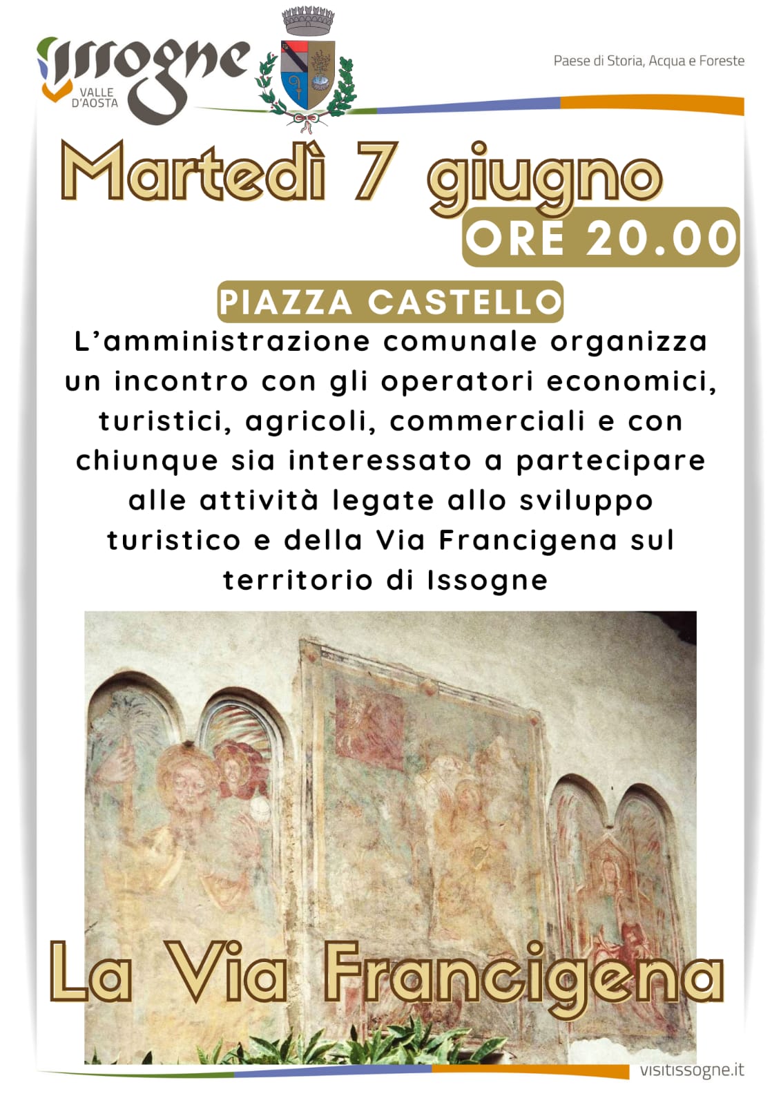 L’amministrazione comunale organizza un incontro con gli operatori economici, turistici, agricoli, commerciali e con chiunque sia interessato a partecipare alle attività legate allo sviluppo turistico e della Via Francigena sul territorio di Issogne.