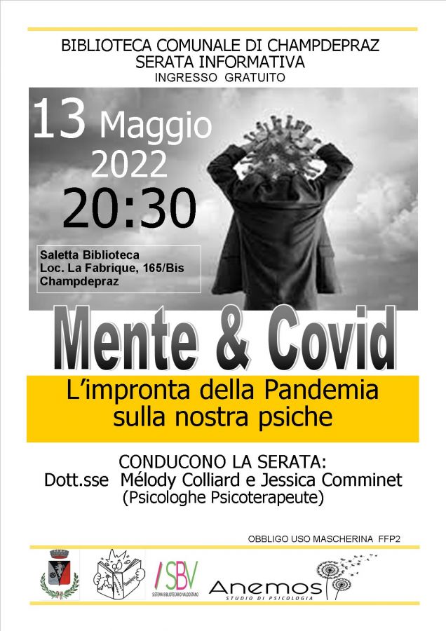 La Biblioteca di Champdepraz è lieta di invitarvi Venerdi' 13 maggio dalle ore 20:30 ad una serata informativa dal titolo Mente & Covid.