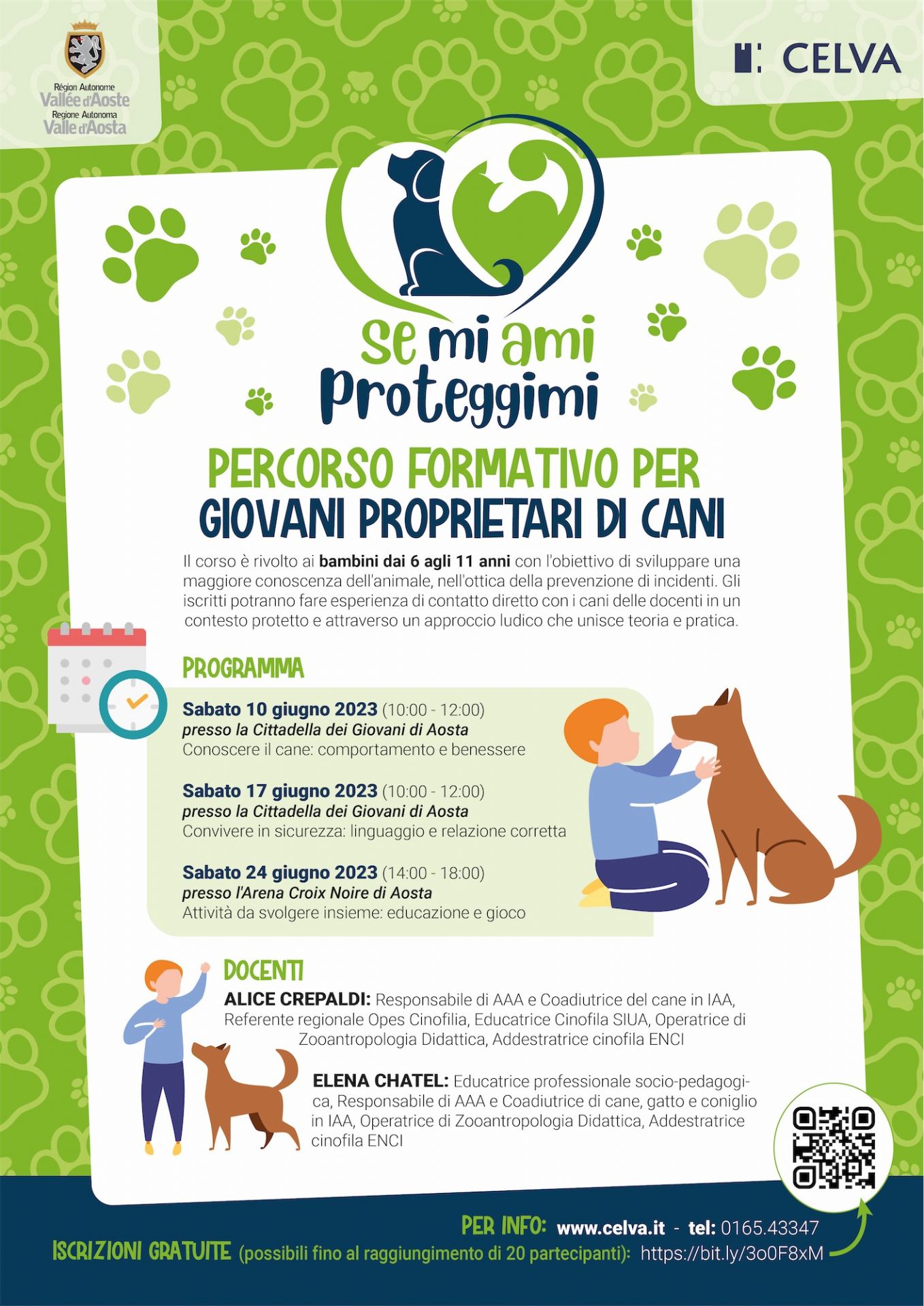 Il CELVA, nell’ambito della Convenzione in merito alle modalità di controllo del randagismo e protezione degli animali da affezione sul territorio regionale per il periodo 1° gennaio 2022 – 31 dicembre 2024 tra CELVA, Regione Autonoma Valle d’Aosta, AUSL della Valle d’Aosta, Ordine dei Medici veterinari della Valle d’Aosta, organizza il primo corso di formazione dedicato ai piccoli proprietari di cani.