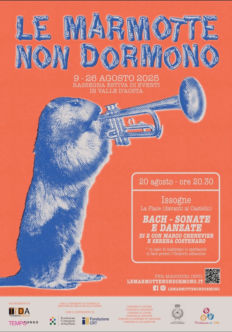 Nella Place di Issogne, davanti al Castello (nell’oratorio in caso di maltempo), Marco Chenevier e Serena Costenaro presenteranno il loro “Bach – Sonate e Danzate”. Nello spettacolo i due autori e protagonisti si confronteranno con Johann Sebastian Bach utilizzando il corpo ed il violoncello come strumenti.