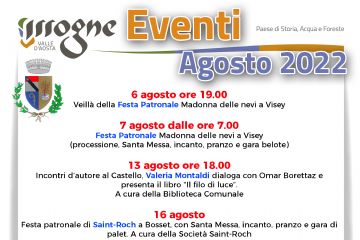 Eventi, manifestazioni che si svolgono durante il mese di Luglio 2022 sul territorio di Issogne