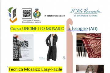 Ecco un nuovo corso organizzato dalla Biblioteca comunale di Issogne: Uncinetto Mosaico!! Si terrà ad Issogne domenica 19 maggio 2024 dalle ore 10,00 alle ore 18,00 insegnando la tecnica Overlay...