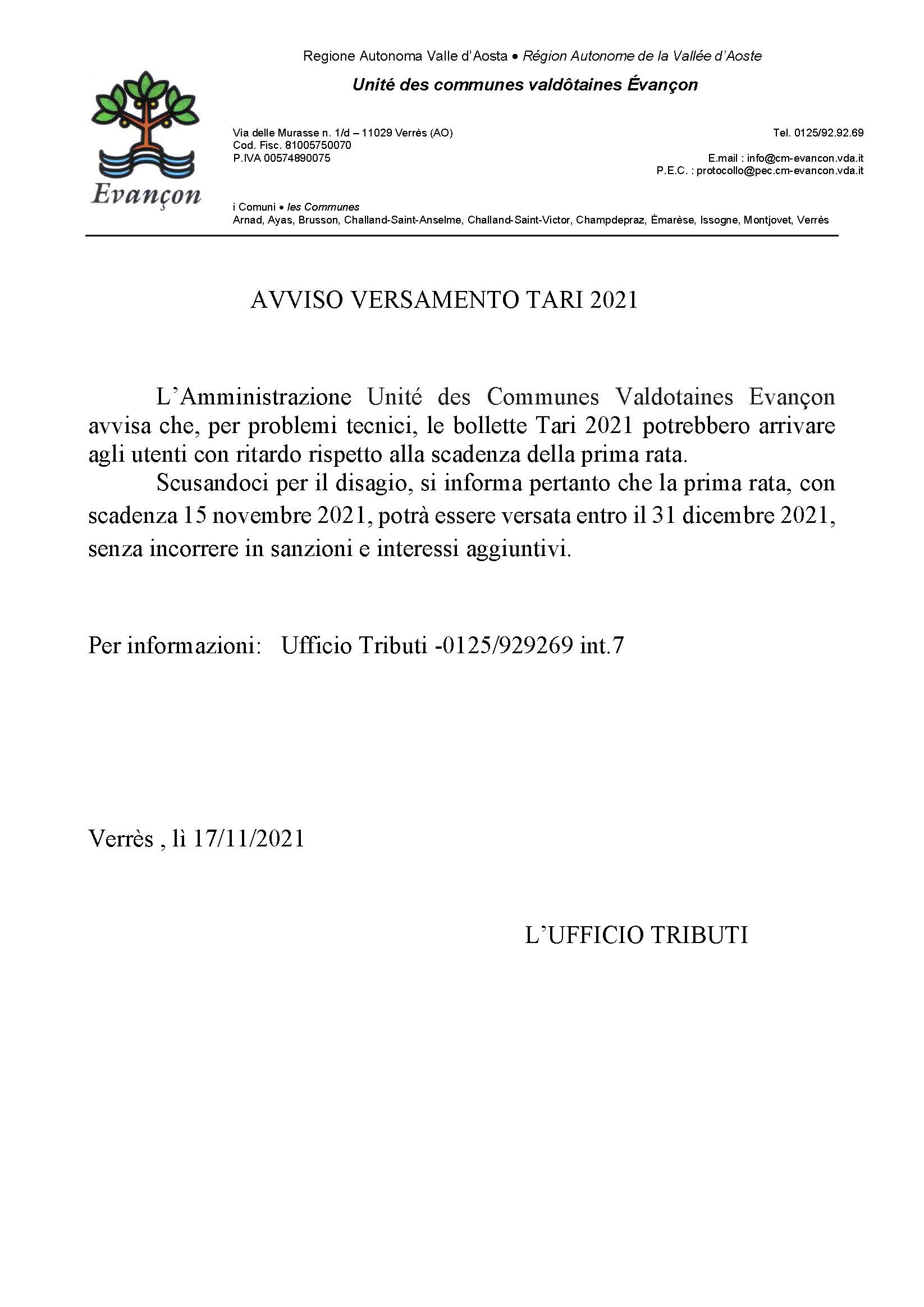 Si informano i cittadini che è in corso la spedizione delle bollette riguardanti il pagamento della prima rata della TARI 2021.
