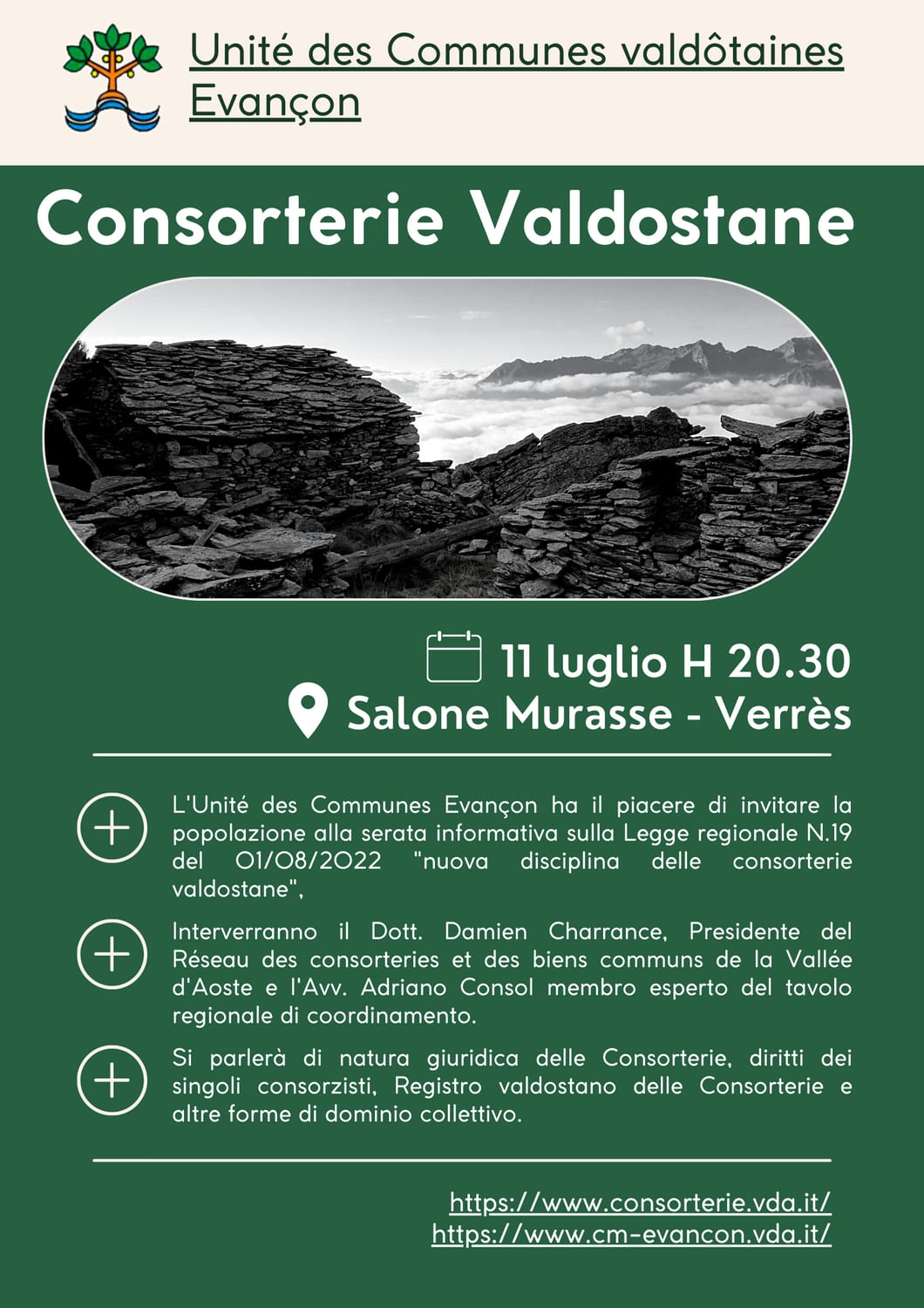 Serata informativa sulla Legge Regionale n. 19 del 01/08/2022 "Nuova disciplina delle consorterie valdostane".