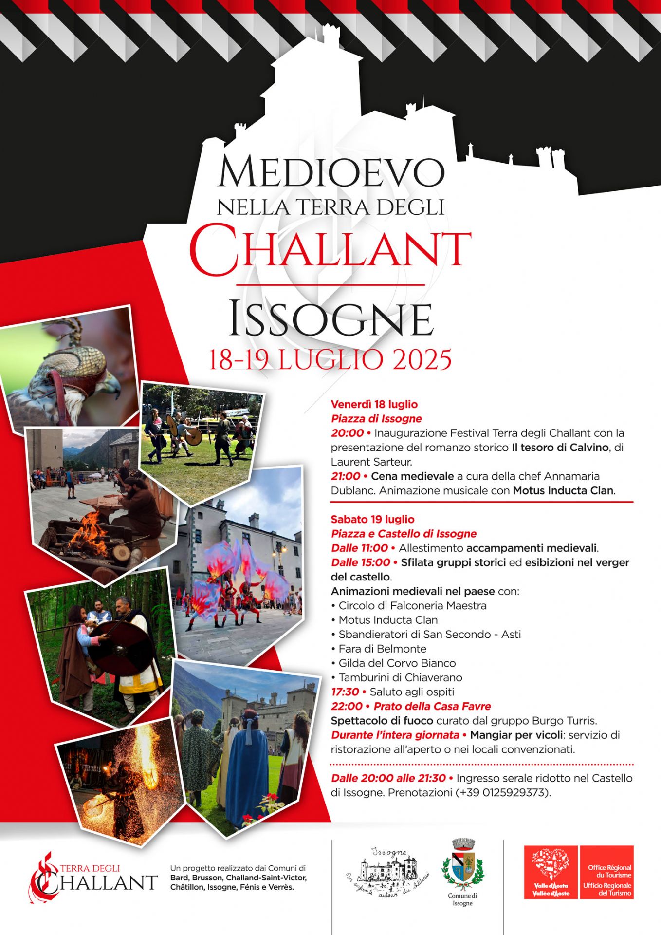 Il 18 e 19 luglio 2025, Issogne accoglie una nuova edizione di “Medioevo nella Terra degli Challant”, l’evento che fa rivivere l’antica epoca dei conti di Challant attraverso rievocazioni storiche, sapori antichi e spettacoli di fuoco notturni.