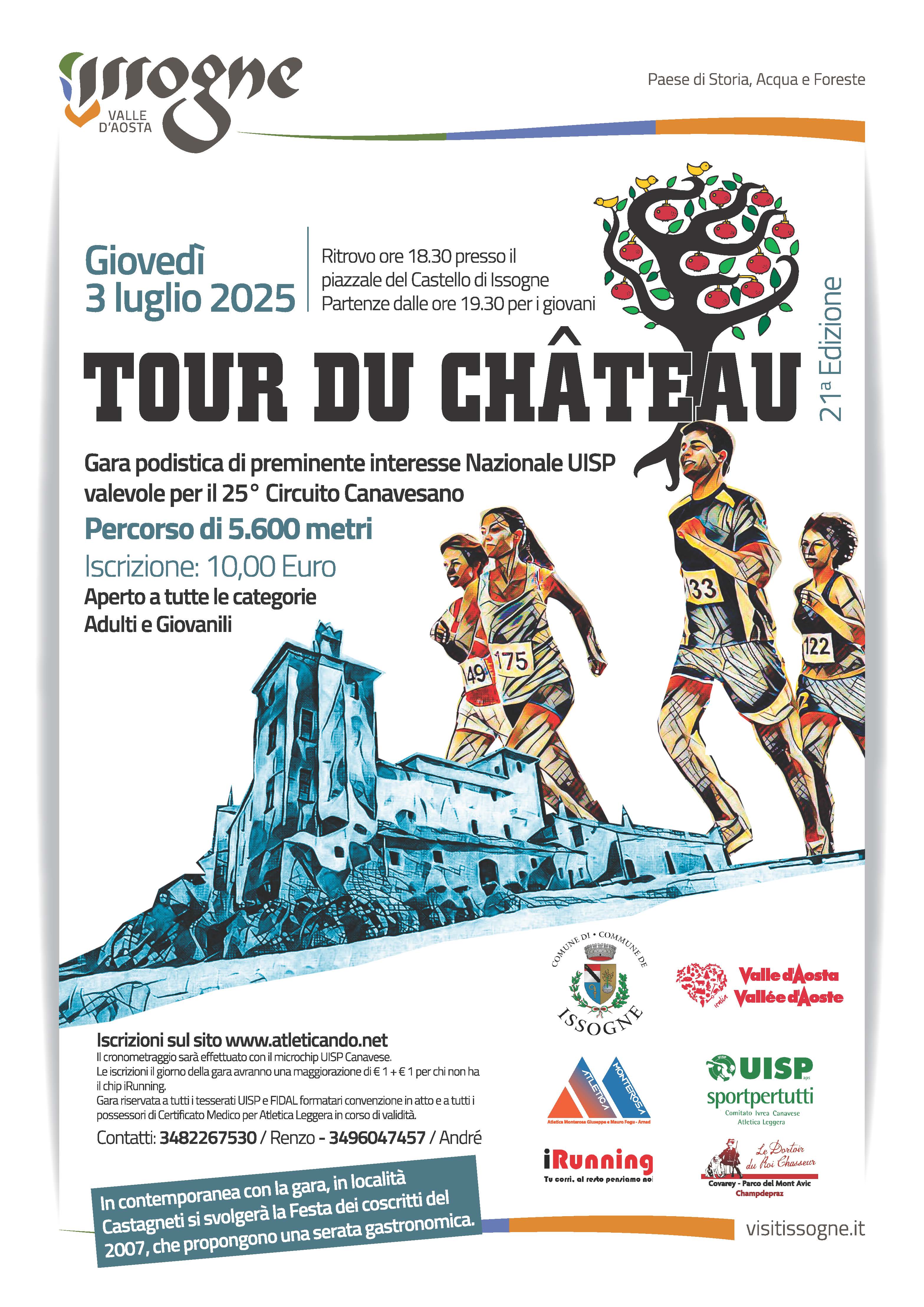 Sono aperte le preiscrizioni per la 21a edizione della gara podistica "Tour du Chateau", organizzata dal Comune, dall'Atletica Monterosa, che si svolgerà il giorno Giovedì 03 luglio 2025.