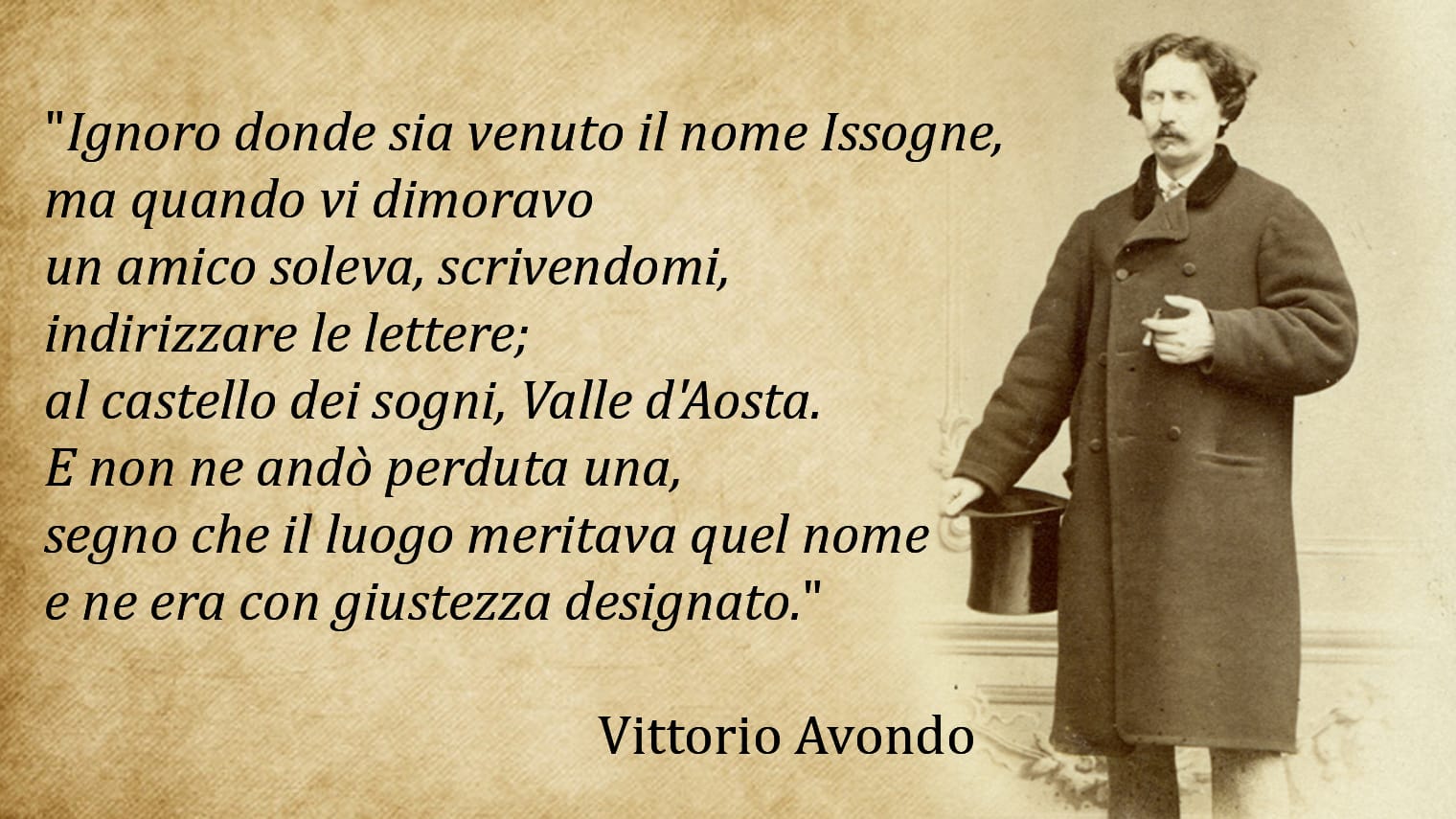 Il 15 giugno 1872, esattamente 150 anni fa, Vittorio Avondo acquisì all'asta il Castello di Issogne, salvandolo dalle speculazioni finanziarie del precedente proprietario, il barone nizzardo Marius de Vautheleret. Questi, intendendo farne una residenza di lusso, vi aveva già collocato termosifoni, pavimenti alla veneziana e, nel giardino, voliere e piscine. Avondo fece del castello un luogo di incontro di studiosi di prestigio, ne promosse un recupero accurato e rispettoso e, infine, lo aprì al pubblico. Nel testamento (1907) lo destinò allo Stato, cui pervenne a tutti gli effetti alla sua morte (1910).