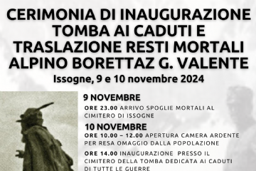 Leggi tuttoCerimonia di inaugurazione tomba ai Caduti e traslazione resti mortali Alpino Borettaz G. Valente