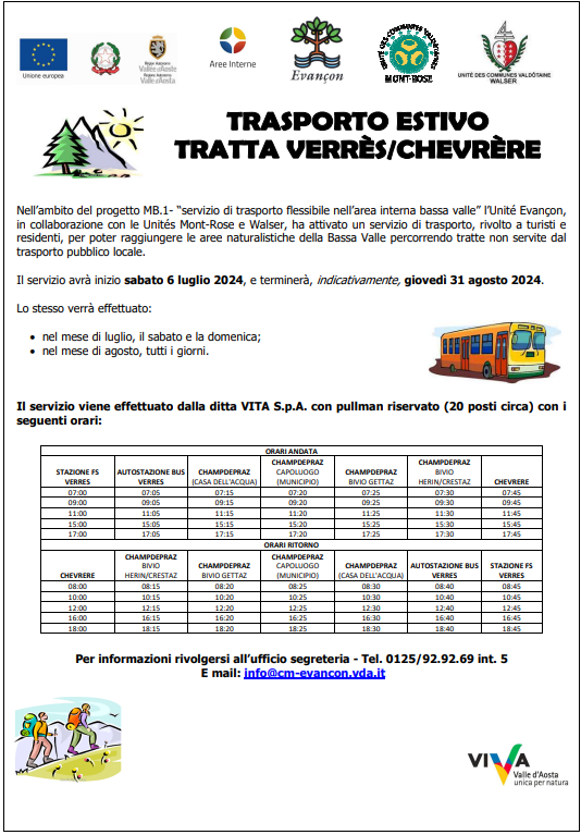 Servizio di trasporto, rivolto a turisti e residenti, per poter raggiungere le aree naturalistiche della Bassa Valle.