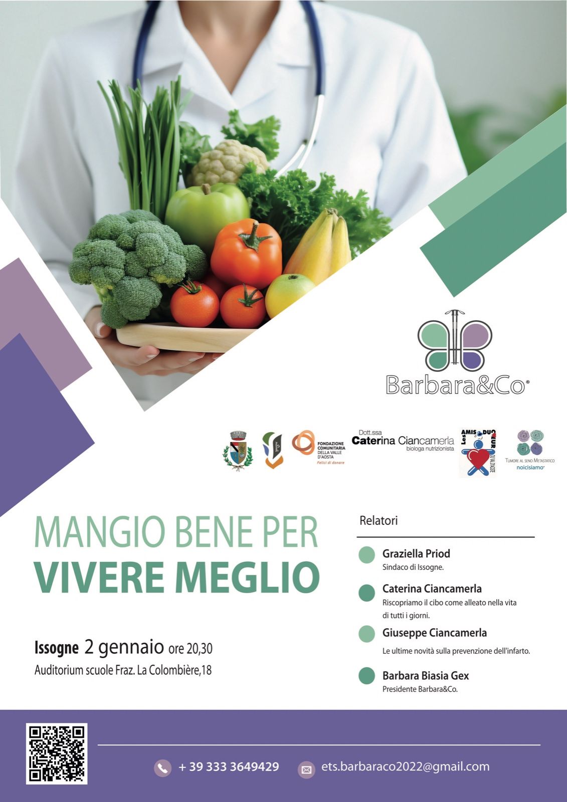 Si terrà venerdì 2 gennaio, alle ore 20:30, presso l’Auditorium delle scuole (Fraz. La Colombière, 18), l’incontro pubblico dal titolo “Mangio bene per vivere meglio”. L’iniziativa, volta a promuovere la consapevolezza alimentare come pilastro del benessere psicofisico, vedrà la partecipazione di esperti e rappresentanti delle istituzioni locali.