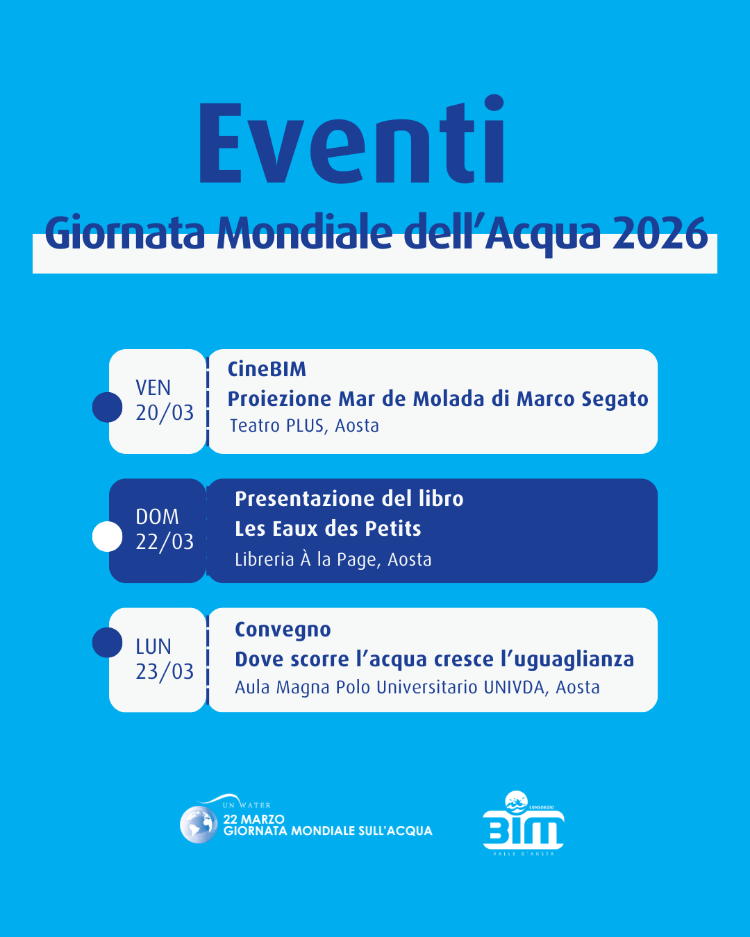 In occasione della Giornata Mondiale dell’Acqua, prevista per domenica 22 marzo 2026, si informa la popolazione che l’erogazione presso la casetta dell’acqua situata presso il Salone Polivalente, sarà gratuita da sabato 21 a domenica 22 marzo 2026.