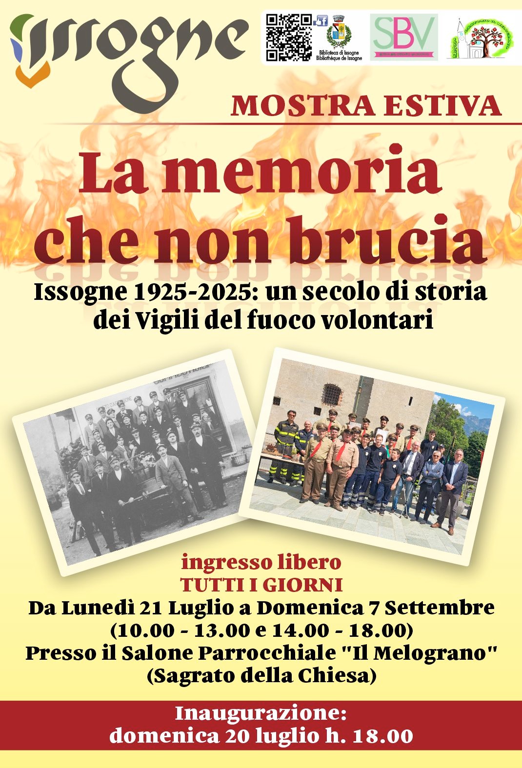 Anche quest’anno torna la mostra estiva di Issogne, appuntamento fisso per i residenti e visitatori, con un’edizione particolarmente significativa dal titolo “La memoria che non brucia”, l’esposizione celebra i 100 anni di attività dei Vigili del fuoco (1925-2025) rendendo omaggio a un secolo di coraggio impegno e servizio per la comunità.