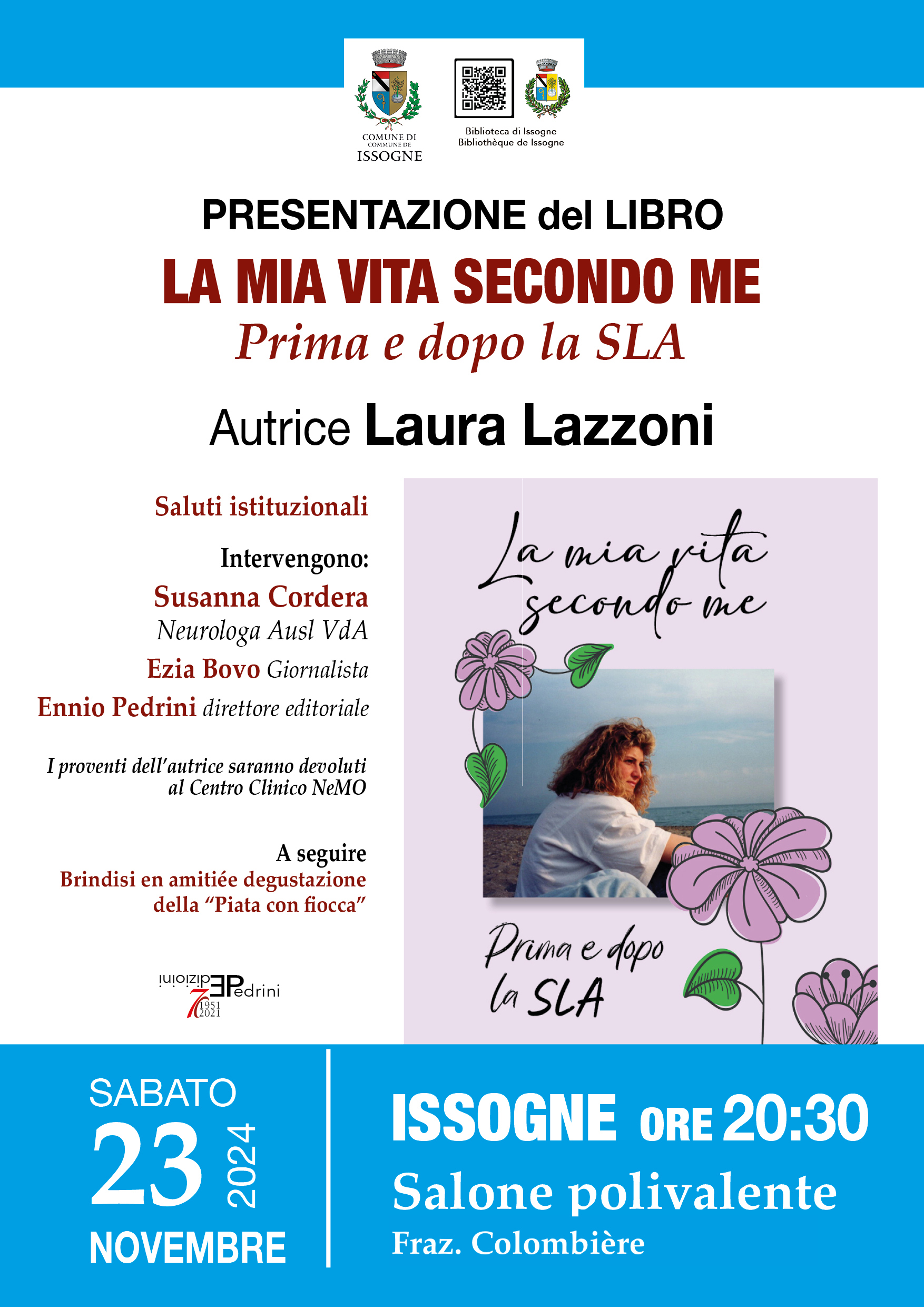 L’autrice devolve il ricavato delle vendite al Centro Clinico NeMO per sostenere la cura della SLA.