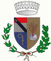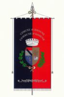 Drappo partito di rosso e di nero, riccamente ornato di ricami d’argento e caricato dallo stemma sopra descritto con l’iscrizione centrata in argento, recante la denominazione del Comune. Le parti di metallo ed i cordoni sono argentati. L’asta verticale è ricoperta di velluto dei colori del drappo, alternati, con bullette argentate poste a spirale. Nella freccia è rappresentato lo stella del Comune e sul gambo inciso il nome. Cravatta con nastri tricolorati dai colori nazionali frangiati d’argento.